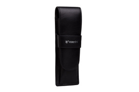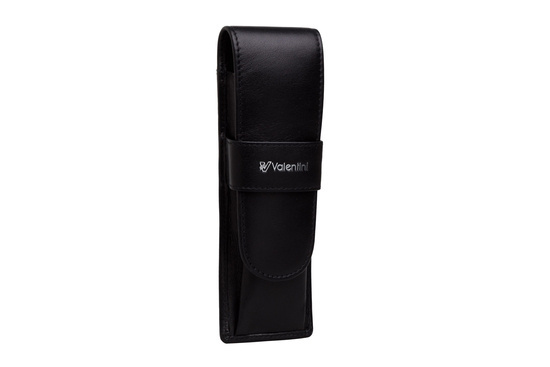 - Czarne etui na długopisy wykonane z miękkiej skóry naturalnej.