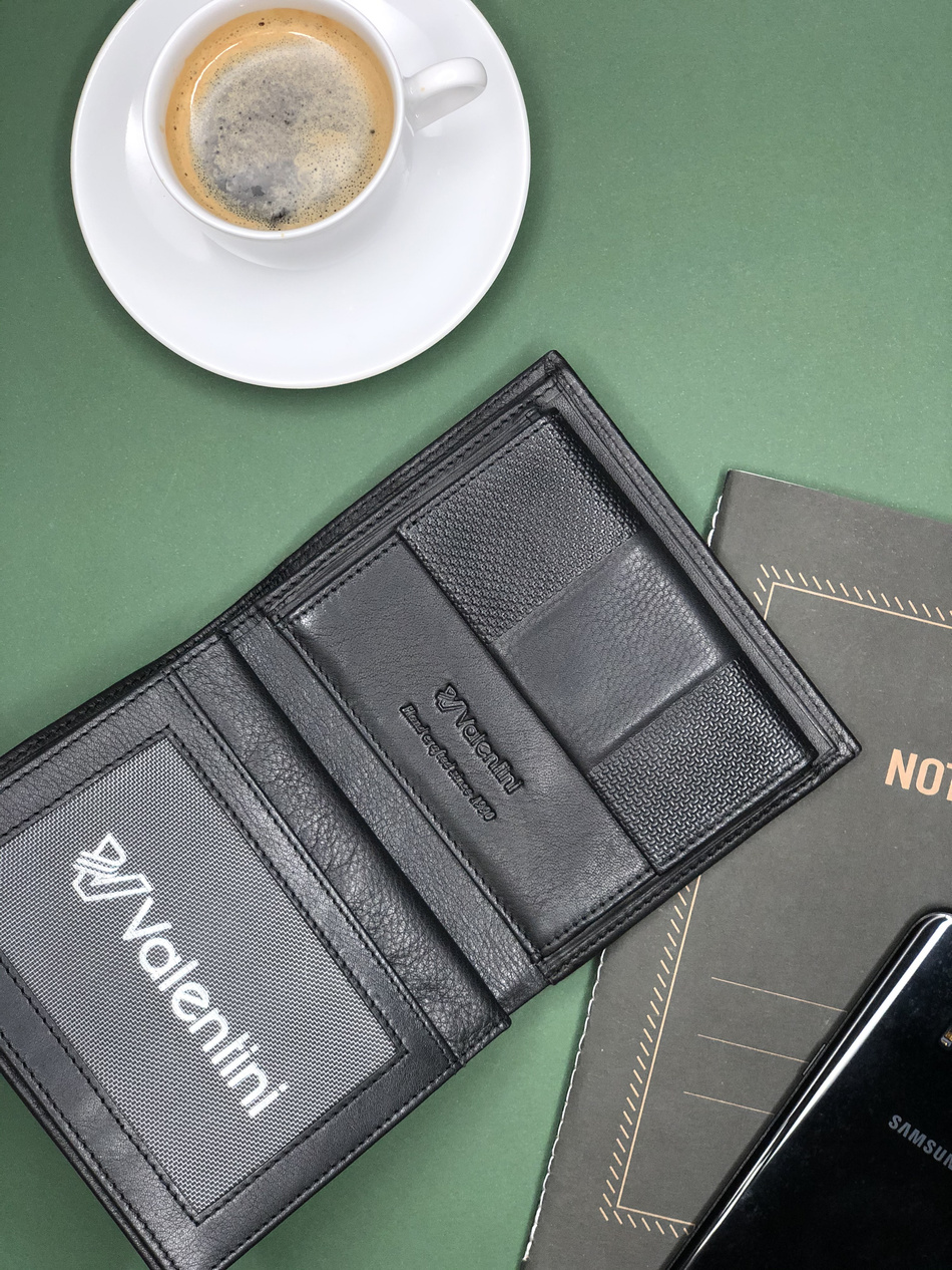 - Schwarze vertikale Herrengeldbörse mit RFID-Schutz Valentini Eibe.