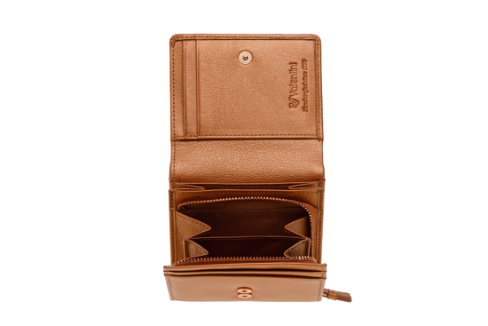 Naturalna skóra bydlęca, z której wykonany jest portfel Valentini, z czasem nabiera pięknej, unikalnej patyny. Każdy portfel staje się dzięki temu wyjątkowy – tak jak jego właścicielka.