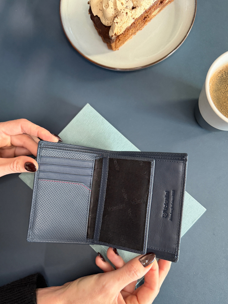 Pionowy portfel męski Valentini Perforated 265 granatowy