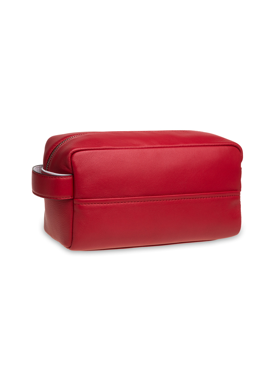 Rote zeitlose Kosmetiktasche aus der Piemonte Kollektion von Valentini aus Naturleder. Die Außenabmessungen des Produkts sind: 25 x 15 x 11 cm. Ein großer Vorteil der Kosmetiktasche ist der seitliche Griff und die 2-Jahres-Garantie des Herstellers.Frage zum Produkt stellen
