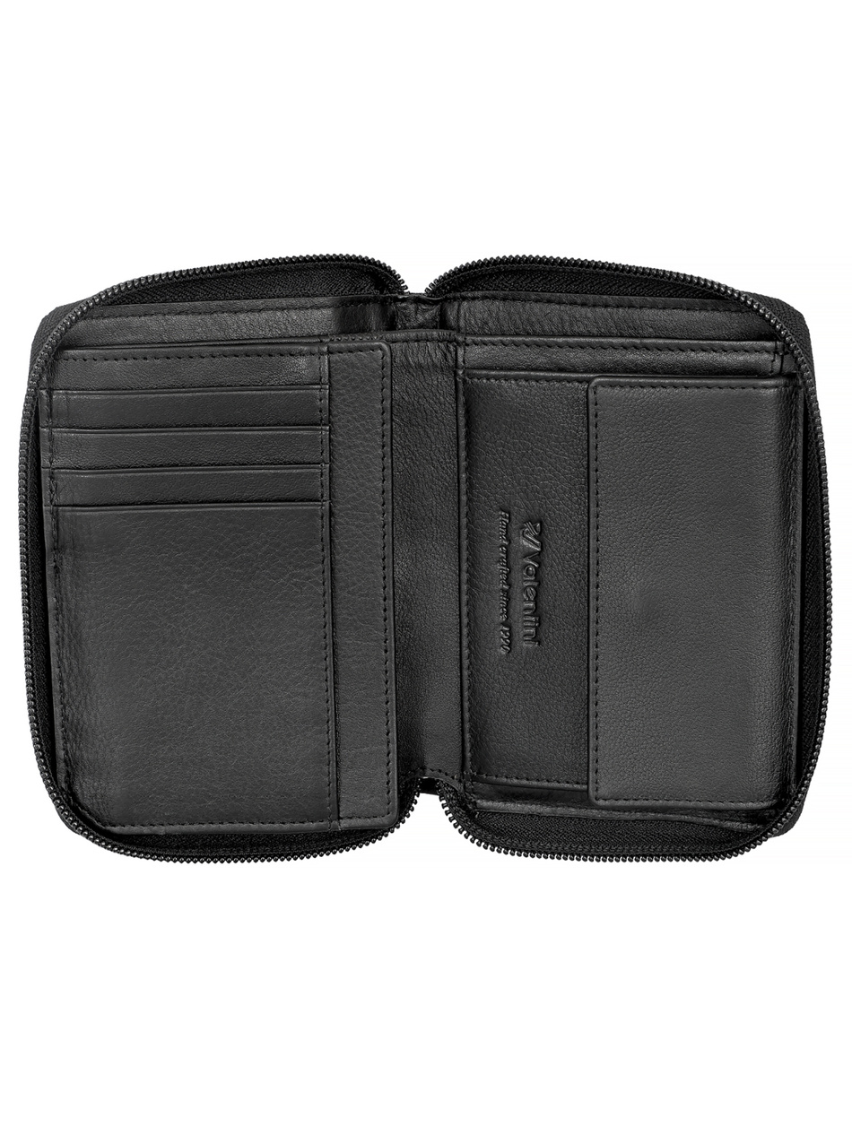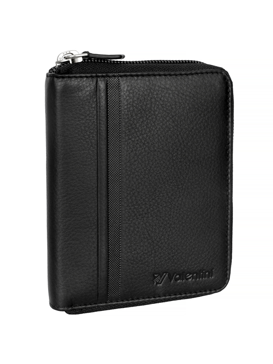 - Vertikales Portemonnaie aus Leder mit Reißverschluss aus der Kollektion Trophy von Valentini in Schwarz.