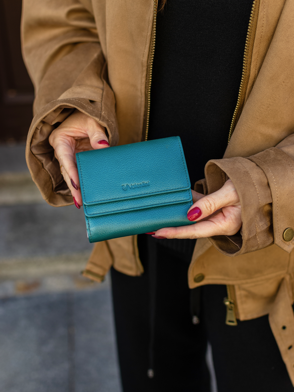 • Grüne, mittelgroße Damengeldbörse aus der Metallic-Kollektion von Valentini aus Naturleder.