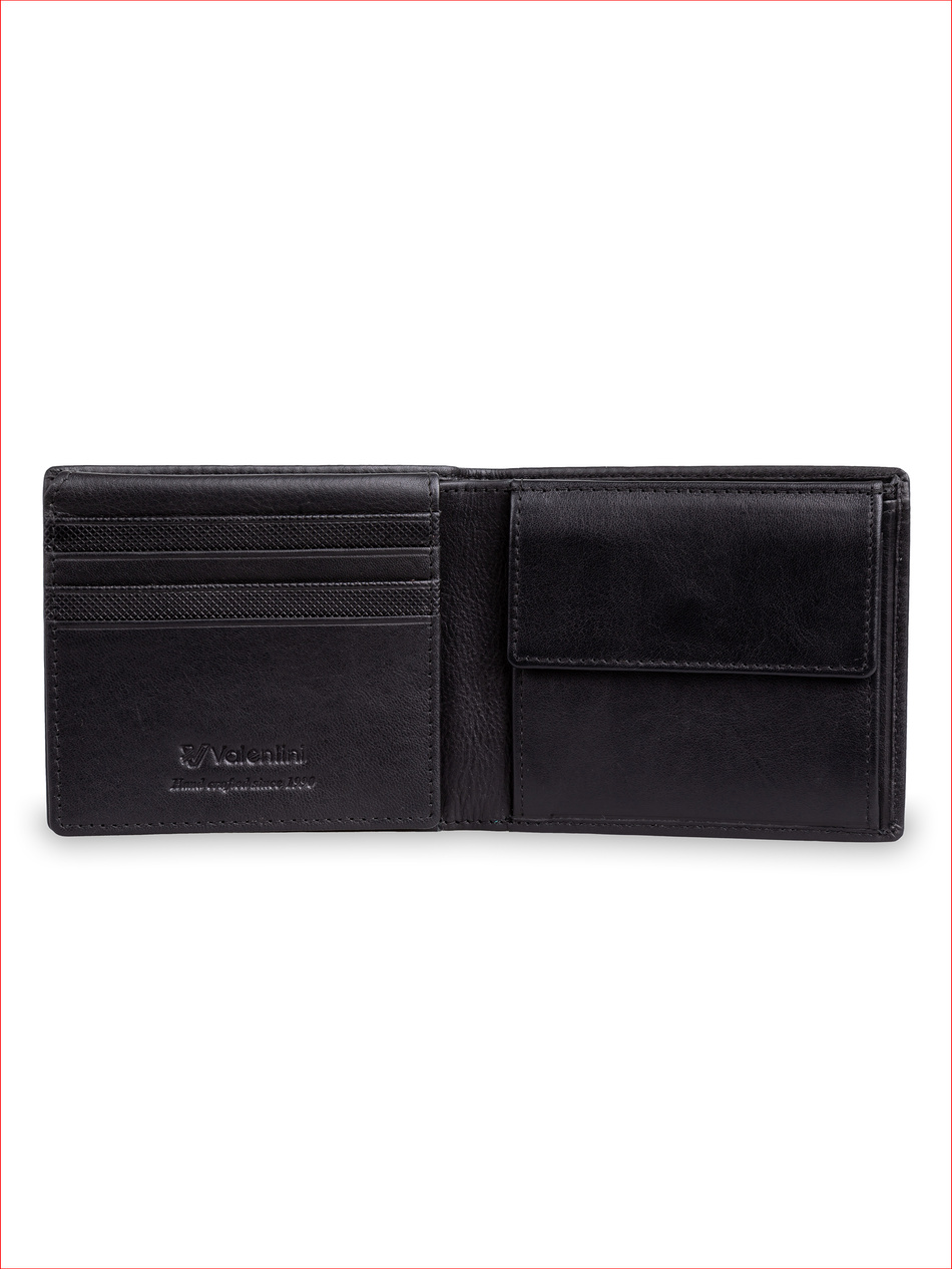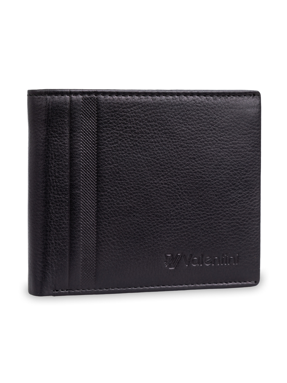 Męski portfel o układzie poziomym z kolekcji Trophy od Valentini wymiarów: 10,5 x 9 cm. Wewnątrz produkt posiada 3 miejsca na dokumenty, 8 na karty oraz kieszeń na bilon zamykaną na zatrzask. Na froncie znajduje się wytłoczone logo Valentini oraz fakturowany pasek – całość jest klasyczna, ponadczasowa a zarazem elegancka. Portfel został wykonany z wysokiej jakości skóry naturalnej.Zapytaj o produkt