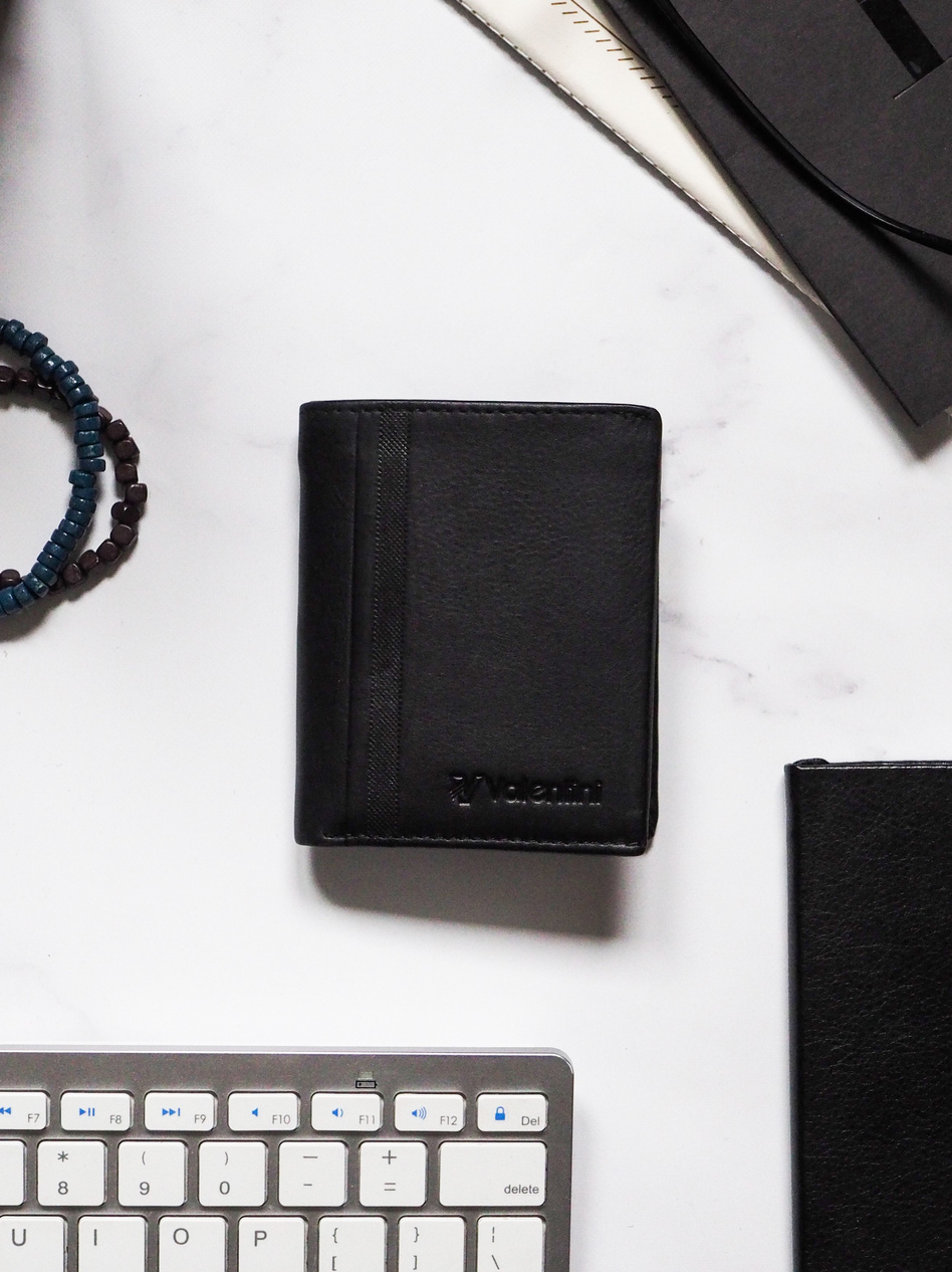- Pionowy portfel męski od Valentini z kolekcji Trophy, wykonany ze skóry naturalnej.