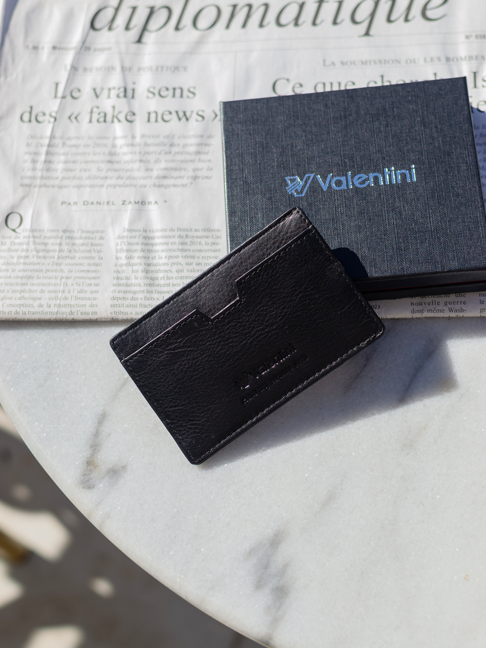 Na froncie etui znajduje się wytłoczone logo Valentini oraz fakturowany pasek – całość jest klasyczna, ponadczasowa, a zarazem elegancka. Etui zostało wykonane z wysokiej jakości skóry naturalnej.