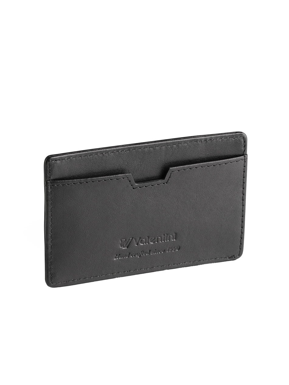 Skórzane etui na karty i dokumenty z kolekcji Trophy od Valentini w kolorze czarnym o wymiarach 7 x 10,5 cm.Produkt posiada 2 miejsca na karty oraz dodatkową kieszeń na dokumenty. Etui jest wykończone z najwyższą starannością, w klasycznym odcieniu czerni.