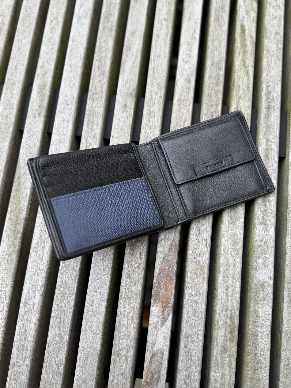 Męski portfel z kolekcji Fusion od Valentini w wymiarach 11,5 x 9,5 cm posiada 2 miejsca na dokumenty i aż 7 na karty kredytowe. Wewnątrz znajdują się 2 pojemne przegrody na banknoty i kieszonka na bilon zapinana na zatrzask. Dodatkowo miejsce na fotografię. Portfel został wykonany z połączenia dwóch materiałów, wysokiej jakości skóry naturalnej w ponadczasowym, czarnym kolorze oraz płótna w kolorze granatowym. Na froncie widnieje również wytłoczone logo firmy Valentini. Wszystkie portfel z kolekcji Fusion wyróżniają się casualowym designem, który świetnie sprawdzi się jako prezent dla młodych dorosłych.Zapytaj o produkt