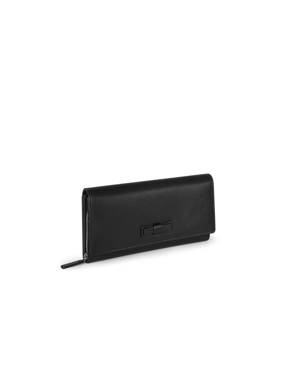 Valentini Bow 277 - Nie Tylko Elegancja, Ale i Funkcjonalność Wnętrze portfela o wymiarach 19,5 x 10 cm kryje sześć przegródek na karty kredytowe, pięć dodatkowych kieszeni na dokumenty oraz specjalne miejsce na ulubione zdjęcie. Dwa osobne przegrody na banknoty oraz dodatkowa, zewnętrzna kieszeń zapinana na zamek dopełniają funkcjonalności tego eleganckiego portfela.